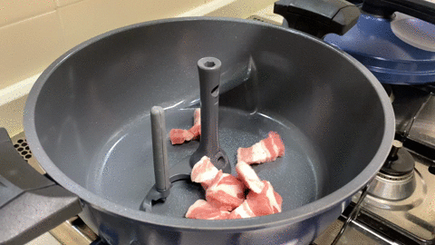 뚜껑 없는 볶음팬에서 삼겹살이나 볶음요리를 해보신 분이라면 곳곳에 튀는 기름의 고통을 줄일 수 있다는 것이 얼마나 큰 장점인지 아실 거예요. 또한 요리 시간도 줄일 수 있습니다.